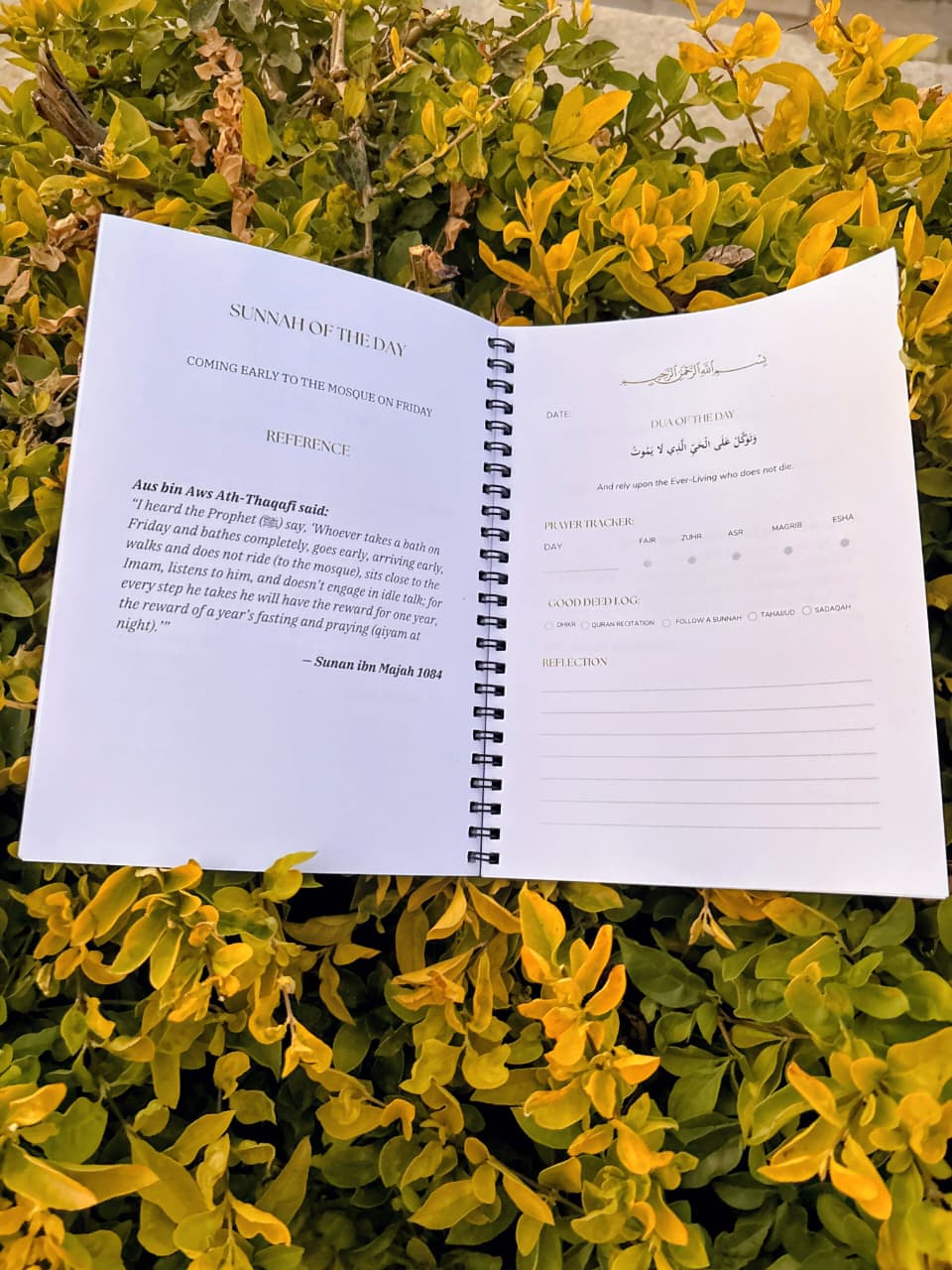 Each day features a new Sunnah learning to inspire you with the beautiful teachings of the Prophet ﷺ, a heartfelt Dua to strengthen your prayers, a Namaz (prayer) tracker to help you stay consistent in your Salah, a good deeds tracker to motivate acts of kindness, and a dedicated space for personal reflection where you can express gratitude and spiritual growth.